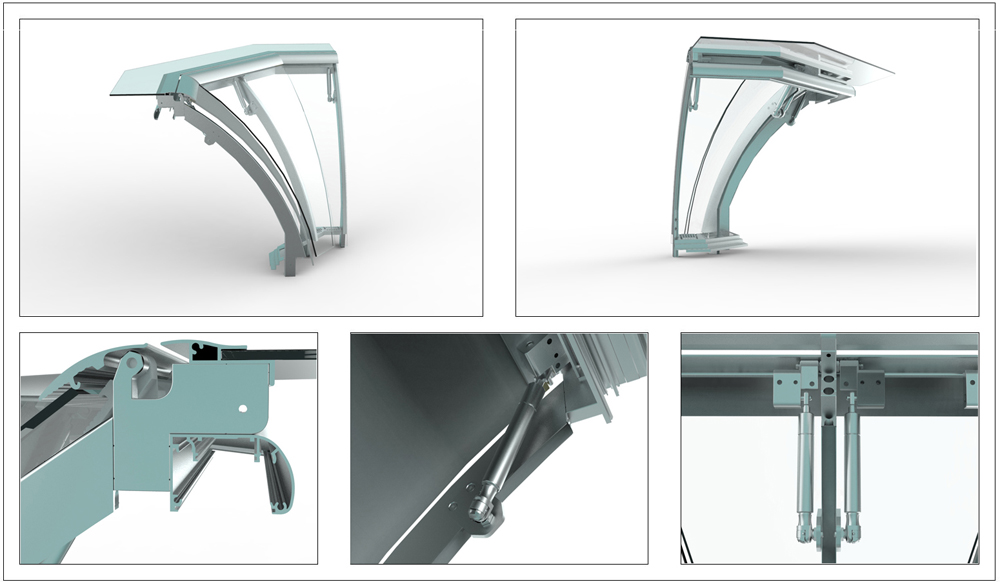 Kuzey dizayn tesislerinde üretilen yay bombe cam kolları olarak 3 farklı ürün grubu ve her bir ürün grubuna ait Radius 1016 ve radius 800 olmak üzere iki farklı bombe ve 1016-830,1016-770,800-770,800-730 yay ölçülerinde dört farklı cam ölçüsüne hitap edebilen 12 farklı yay bombe kol ürünlerini sizlere sunmaktadır. Bu ürünlerimizin tamamı iç köşe 90 ° olabilmektedir. İç köşe ünitelerimizde 1 adet sağ 1 adet sol ve 1 adet orta kol grubu kullanılmaktadır. Ayrıca tüm modellerimizin montaj kolaylıklarına dikkatiniz çekmek isteriz.